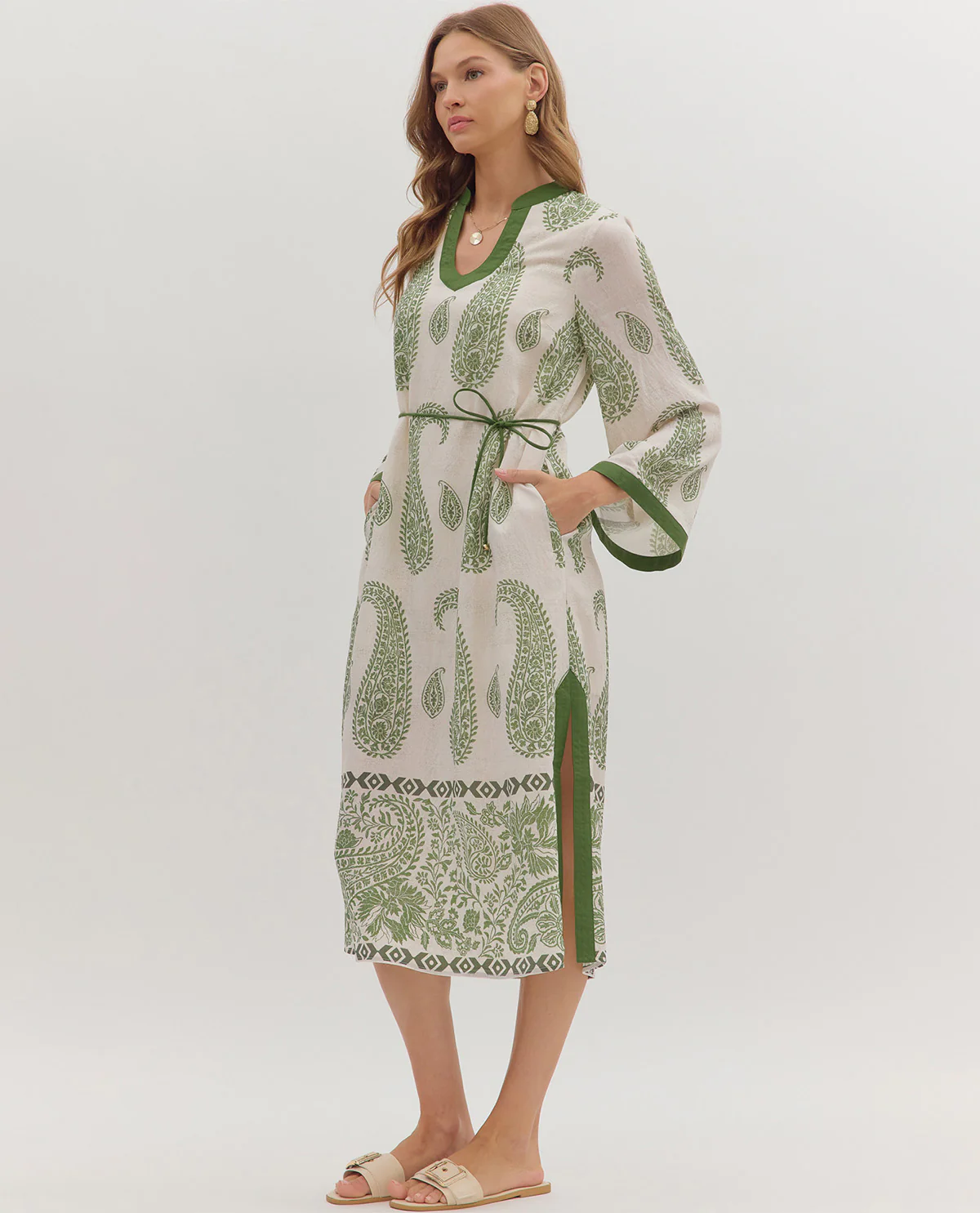 Twirl into autumn with this stunning Entro paisley print long sleeve dress! Featuring an eye-catching paisley pattern that brings bohemian flair to your everyday wardrobe, this dress combines comfort with effortless style. The long sleeves provide versatile layering options for cooler days, while the flattering silhouette works for everything from casual outings to weekend adventures. Perfect for those who love a pop of pattern and personality in their closet!